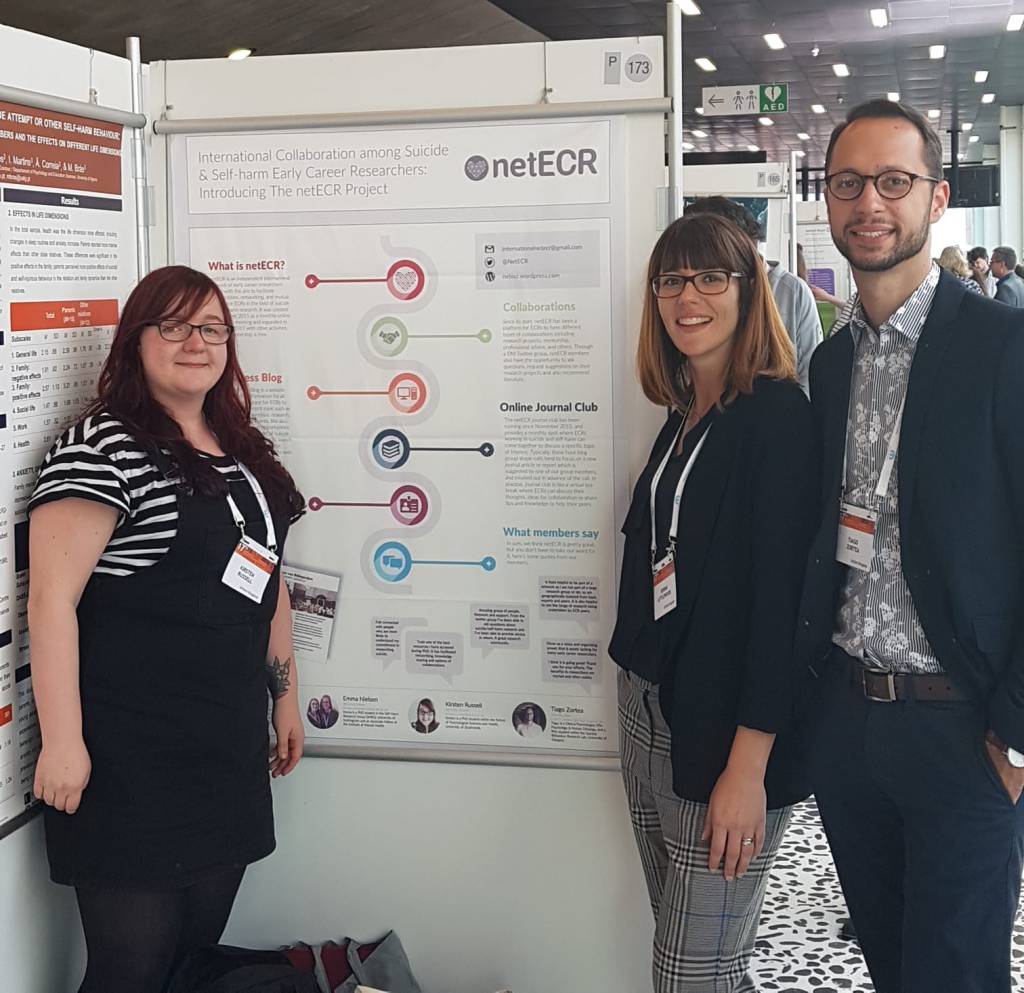 The day was followed by parallel sessions. Four great talks were given by some of our wonderful netECR’s members (Donna Littlewood, Tiago C. Zortea, Karen Wetherall and Seonaid Cleare). Donna Littlewood presented the positive short-term and long-term effects for people with suicidal thoughts or behaviour when participating in a study. Tiago Zortea presented the importance of healthy attachment behaviours, and that an unhealthy ones may lead to suicide risk via defeat and entrapment. The talk by Seonaid Cleare was about the promising effects of mindfulness meditation and muscle relaxation for people who self-harm and/ or with suicidal ideation. The last talk of the session was by Karen Wetherall about the risk of comparing yourself with others on Facebook for suicidal ideation.
